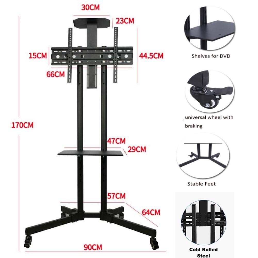 TV height can be adjusted from 1010 to 1500mm. install and usage are simple. All mounting fitting accessories included. Cold-rolled steel is the substance.