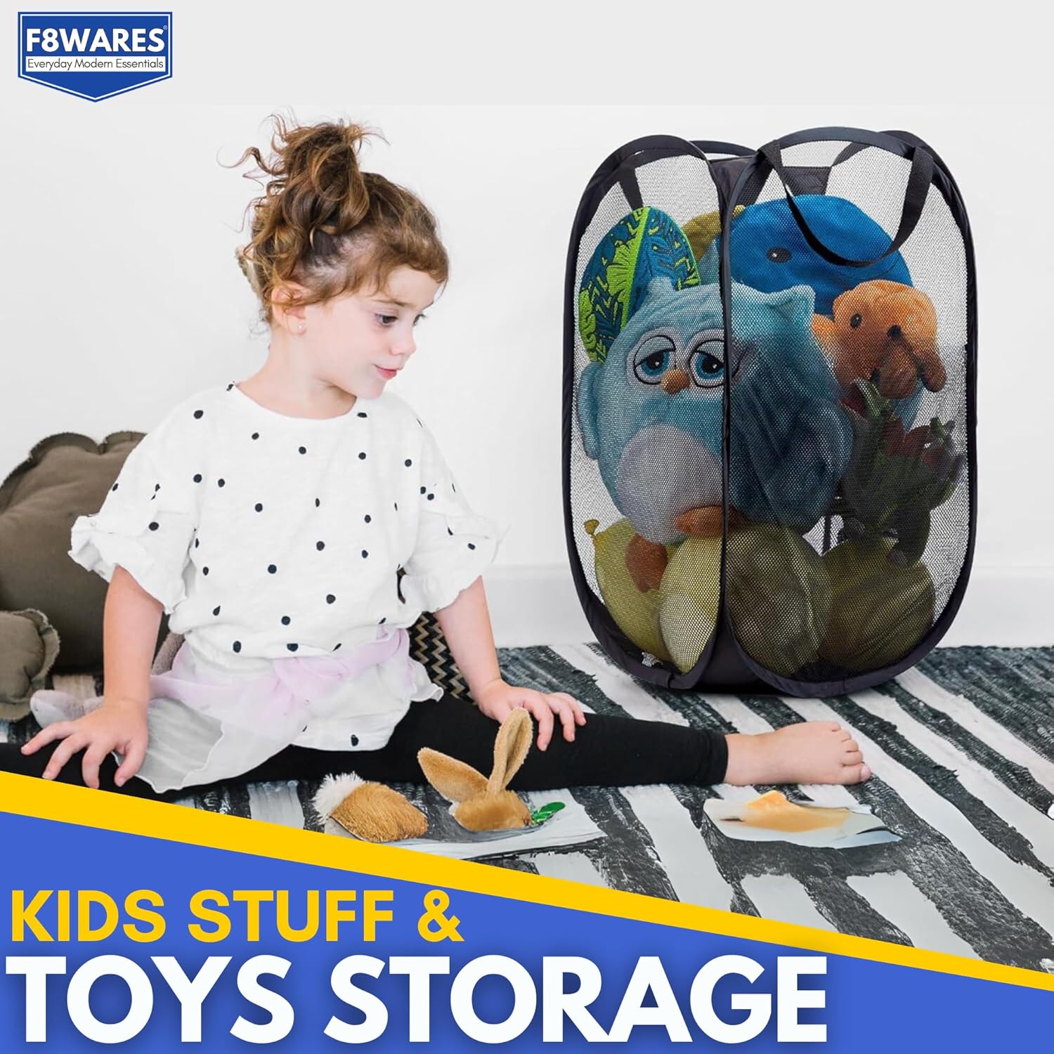 Multipurpose Cloth Basket for Storage Clothes : Our Mesh Laundry Bag foldable or clothes basket can also be used as large size toy storage box , making it an excellent basket for storage needs. Ideal for organizing everything from clothes to toys ; hostel essentials for girls college