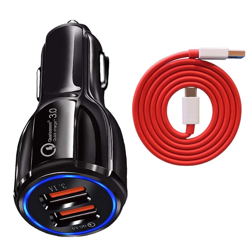 Shopnet Car Charger (Charger+Type C USB Cable), Dualport USB Car Mobile Charger