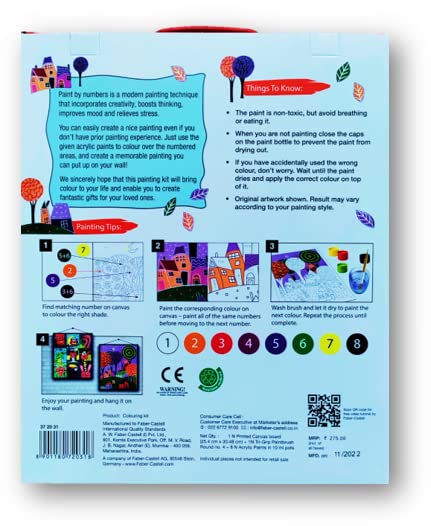 Kit Content 10 x 12 inches printed Canvas Board Acrylic Paints (10 ml) – 8 shades 1 Tri-Grip Paintbrush Round no. 4