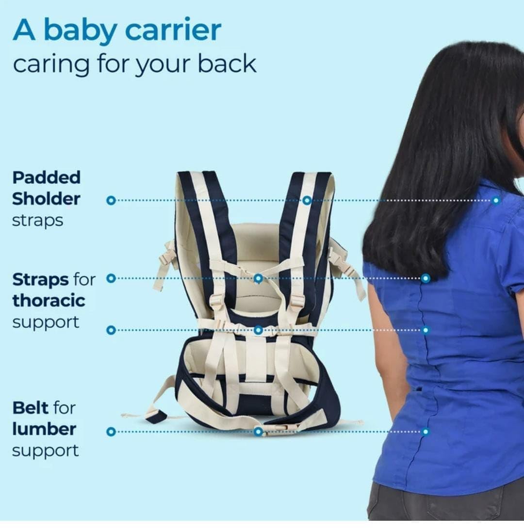 Designed for both newborns and toddlers, this 4-in-1 Adjustable Baby Carrier will keep your little one close and comfortable. Your baby’s head, neck, and back are all adequately supported by the ergonomic design, which also guarantees good hip posture. Even on long walks, the parent and the baby stay cool and comfortable thanks to this baby carrier’s durable polyester construction and soft, breathable cotton. The wide, padded shoulder straps and waist belt help prevent shoulder or back pain by distributing weight properly. Its adjustable buckles and flexible straps allow parents of different sizes to have a customized fit. Convenience, comfort, and safety are all cleverly combined in this stylish orange and black carrier, making it ideal for both daily use and travel.