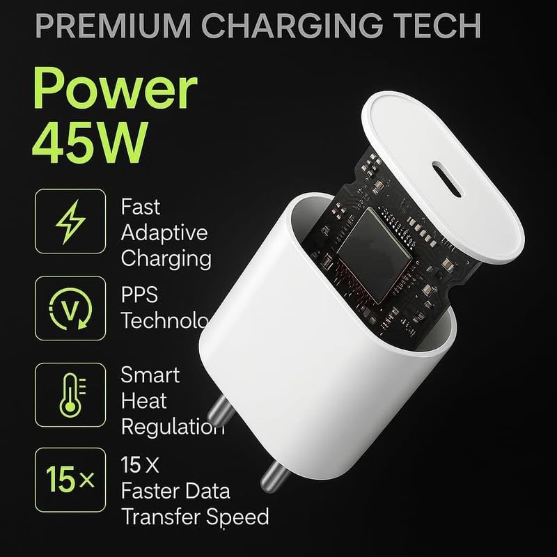 Made for Indian sockets, the wall charger lets you plug in without the need for an adapter And Over-current, Short-circuit and Over-temperature protect your device.