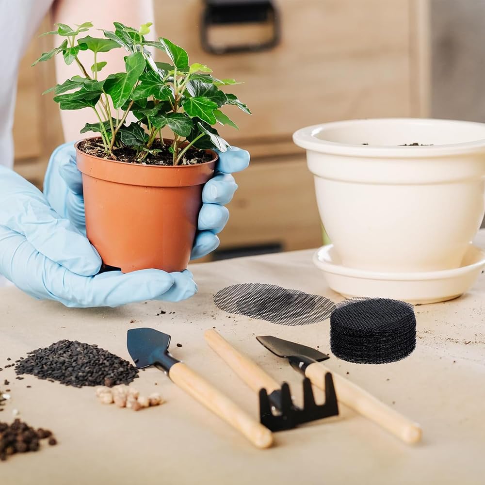 【Multipurpose】 Our plant pots hole mesh pad can be used to cover the bottom of any flowerpot or ceramic flowerpot, preventing soil leaks while keeping your house or table clean and tidy.
