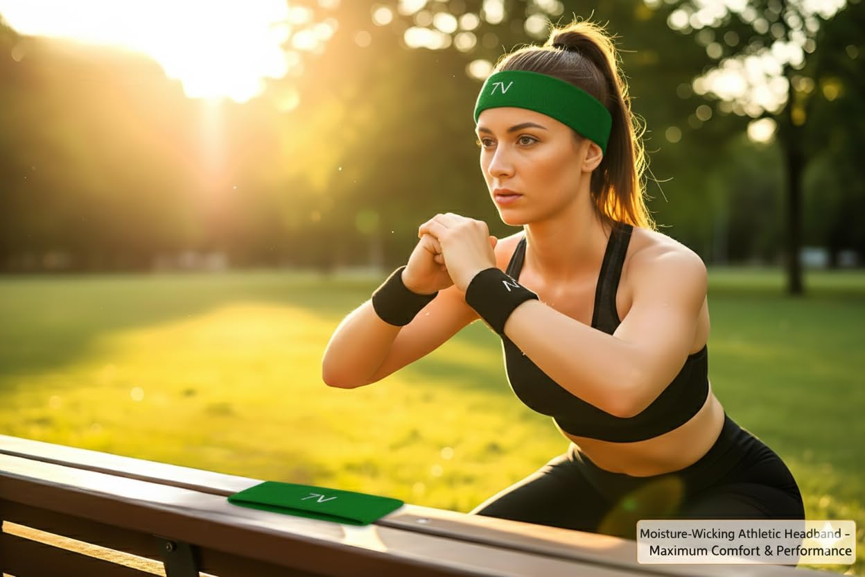 7V Premium Sports Headband for Men & Women Green | Sweat Absorbing, Stretchable, Non-Slip Gym & Running Head Band | Ideal for Fitness, Yoga & Outdoor Workouts (Green)