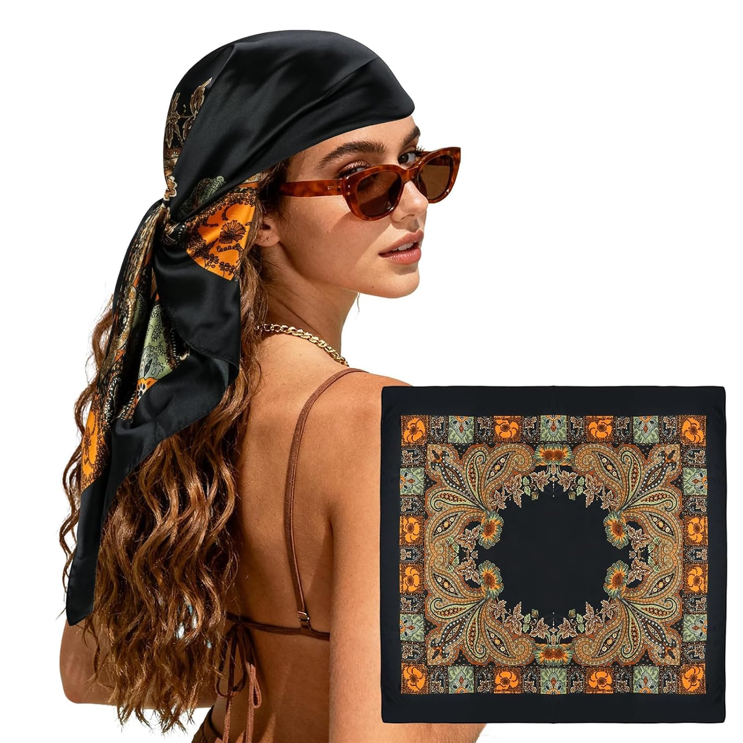 90x90cm Bandana For Women, Hair Scarf For Women,Head Scarf For Women, Silk Scarf For Women, Satin Scarf, Bandana Scarf, Stylish Fashion Accessory for Office Wear
