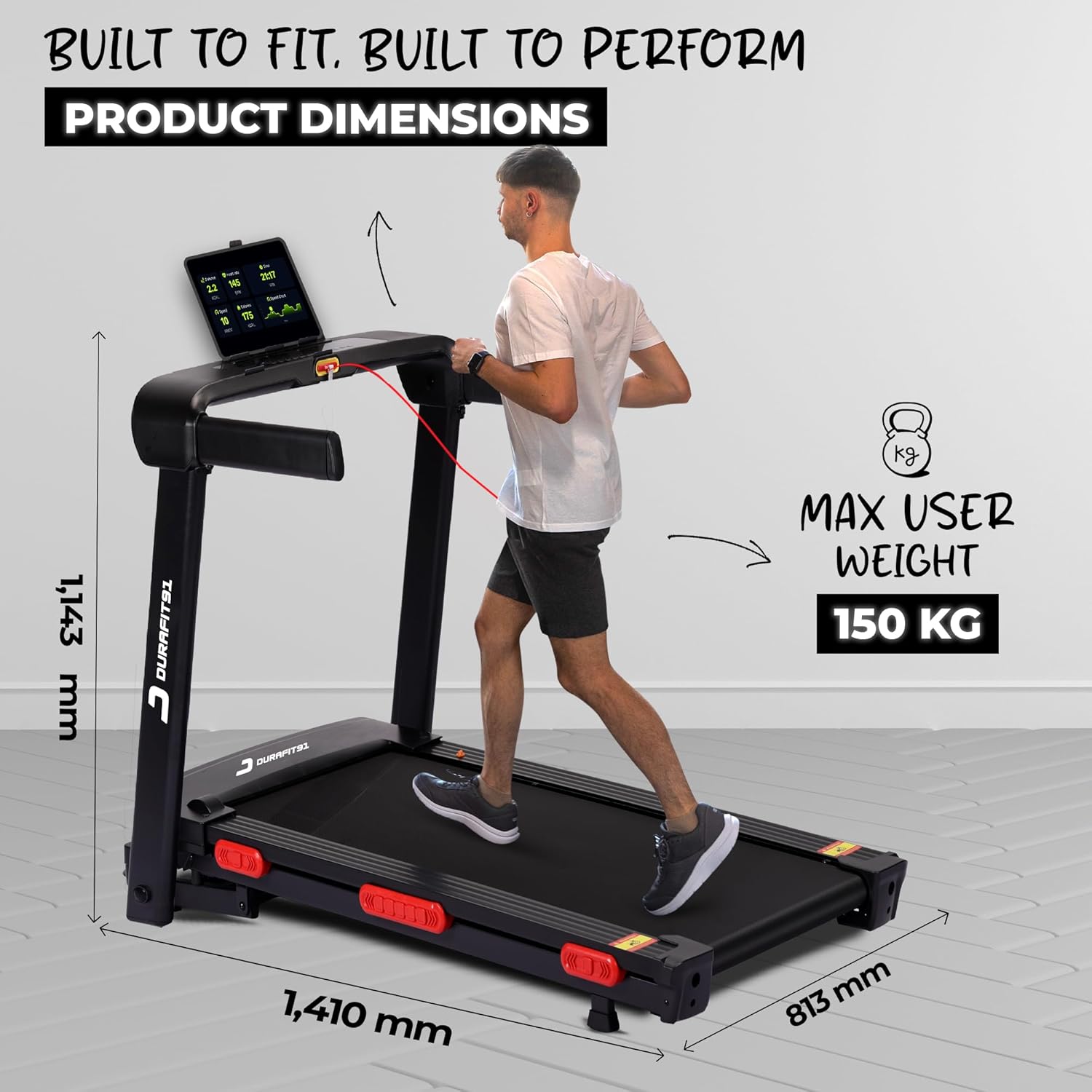 【Heavy-Duty Treadmill with 12 Preset Programs】 – Built for durability, this treadmill supports up to 150 kg for walking and 120 kg for running. Its sturdy frame ensures safety for all users. With 12 preset workout programs, it helps you achieve goals like weight loss, endurance, and improved cardio through varied speed and intensity sessions.