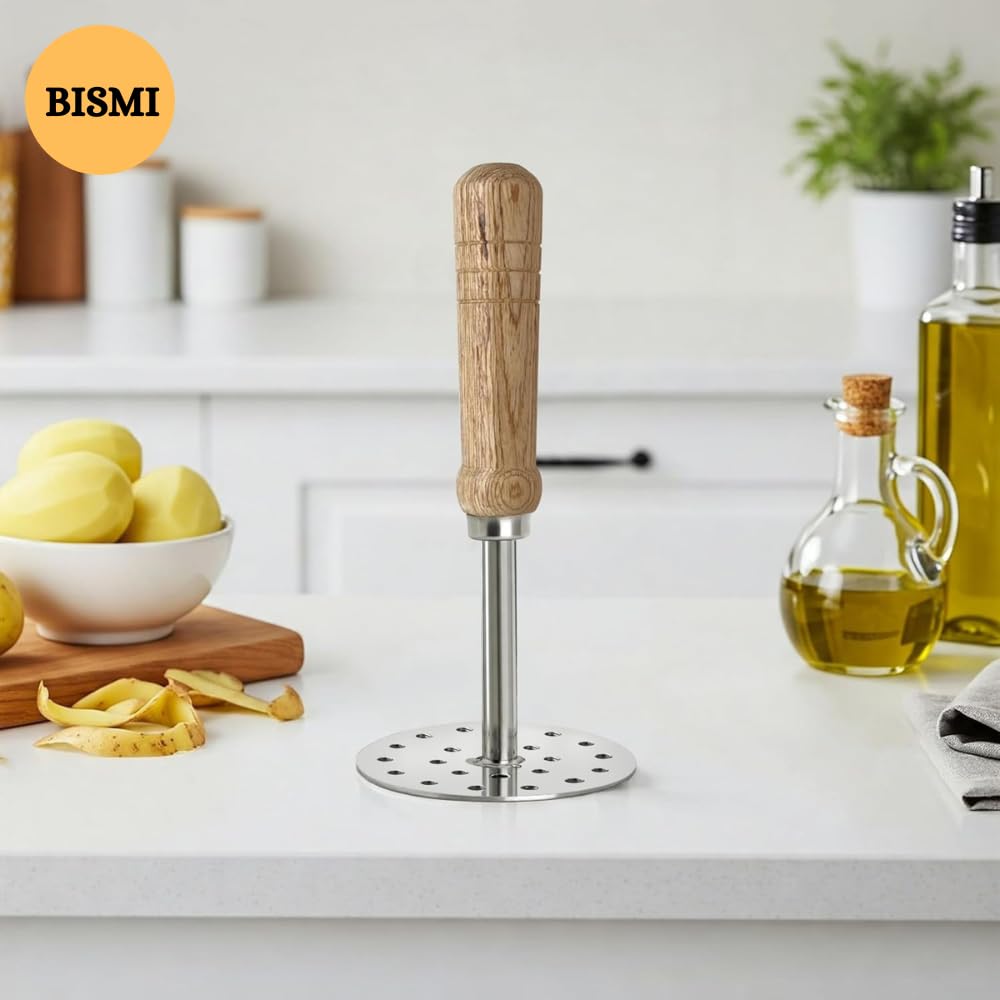 The BISMI Stainless Steel Potato Masher with Wooden Handle – 2.75-Inch Diameter is a dependable and versatile kitchen essential, crafted for both home cooks and professional chefs. Designed with a wide, circular mashing plate, it allows for efficient and even mashing of boiled vegetables, potatoes, and pav bhaji mixtures without leaving lumps. The heavy-duty stainless steel construction ensures long-lasting durability, while the smooth, natural wooden handle offers a comfortable, non-slip grip even during extended use. Its robust build makes it suitable for handling high-volume kitchen tasks, whether in a home setting or a busy restaurant. Ideal for preparing a variety of soft foods like dals, fruits, or root vegetables, this masher combines strength, ease of use, and traditional aesthetics to deliver consistent performance every time. Easy to clean and built to last, it’s a reliable tool for anyone who enjoys cooking hearty, home-style meals.