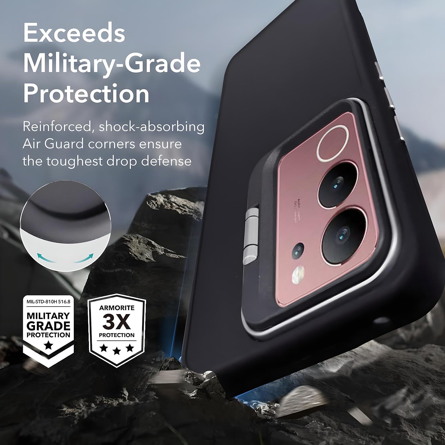 RAISED BAZEL PROTECTION : Ensures the screen and camera lenses are elevated when placed face down, reducing the risk of scratches.