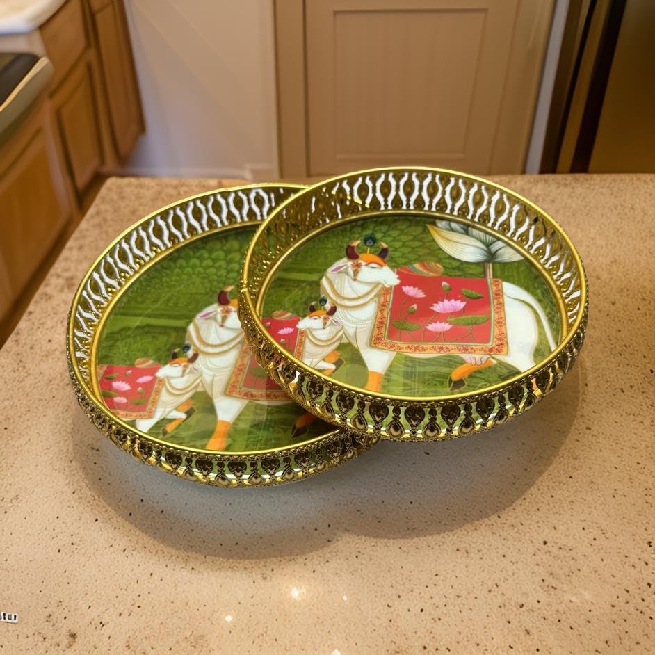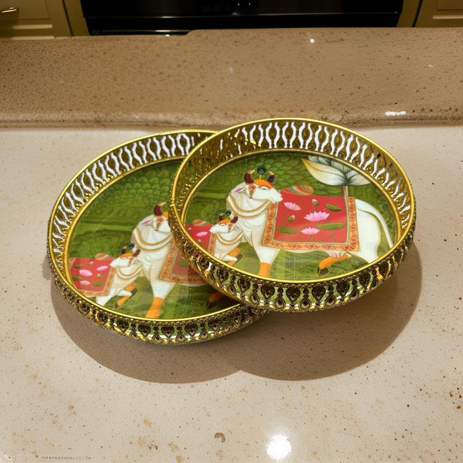 The perfect addition to elevate your home décor and dining experience. This set includes two stunning trays, measuring 14 and 12 inches in diameter, designed to add a touch of elegance to your center table or any space in your home. Enhance your dining experience and home décor with the timeless charm of our Metal Serving Decorative Laser Serving Trays and Platters. Make every gathering a special one with these elegant trays that effortlessly blend functionality with aesthetics.
