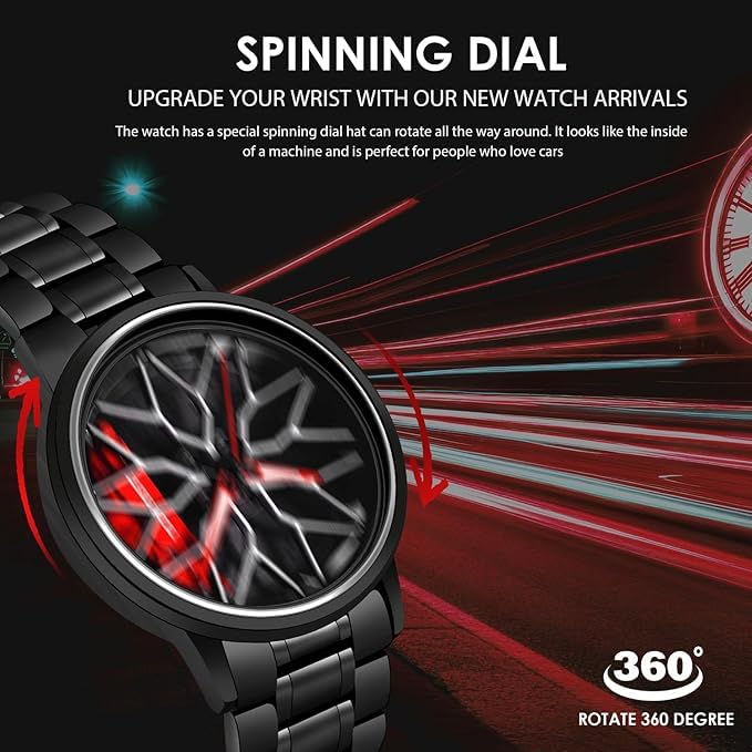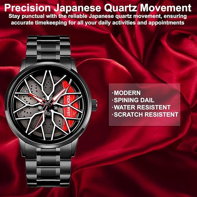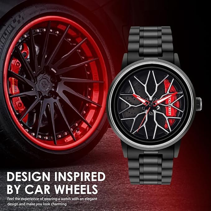 Inspiration of the Men’s Watch Design Car wheel watch combines speed and mechanical aesthetics. Its unique lines, contours and structure have become the source of inspiration for the “wheel watch”. The spinning dial draws on the circular contour of the wheel, the pointer crosses the time track like a spoke, and the scale integrates the details of the wheel. The car rim watch is a tribute to the car culture, allowing the wearer to feel the flow of time while appreciating the passion and charm of the car world.