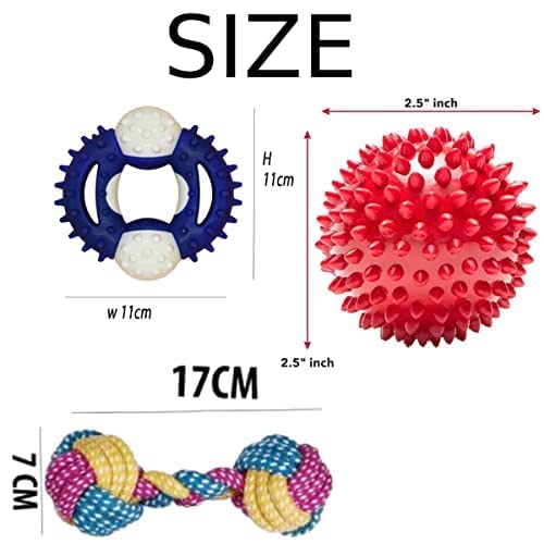 Dog Trust Chew Toys + Chew Toys for Dogs Adult + Dog Rope Dumbbell + TPR Hard Chew Spike Ring (3.5 Inch) + Rubber Stud Spike Hard Ball Teething Toy for Chewers Medium & Large Breed Combo of 3