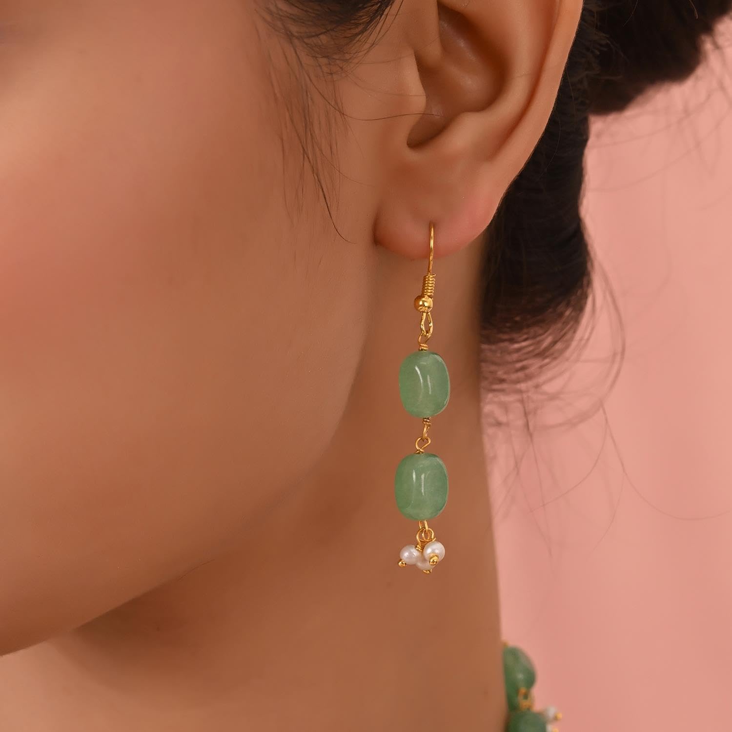 Get a classic & ethnic look by this leheriya green coloured necklace by Ratnavali Jewels. Featured with Green Dulduul Glass beads An White Small Round Pearls giving a vibrant look to this piece. The product consists of natural beads which are dyed. Great for daily wear use or with any traditional outfit. Approximate Length: 8 inches;