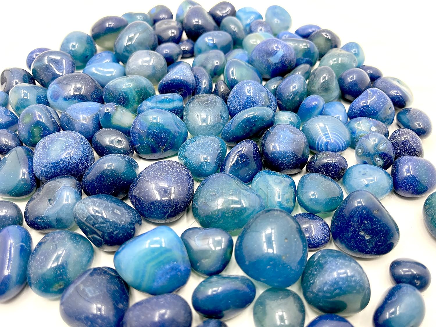 Good quality glossy blue onyx pebbles for decoration and home decor. Size 15 to 30 mm.