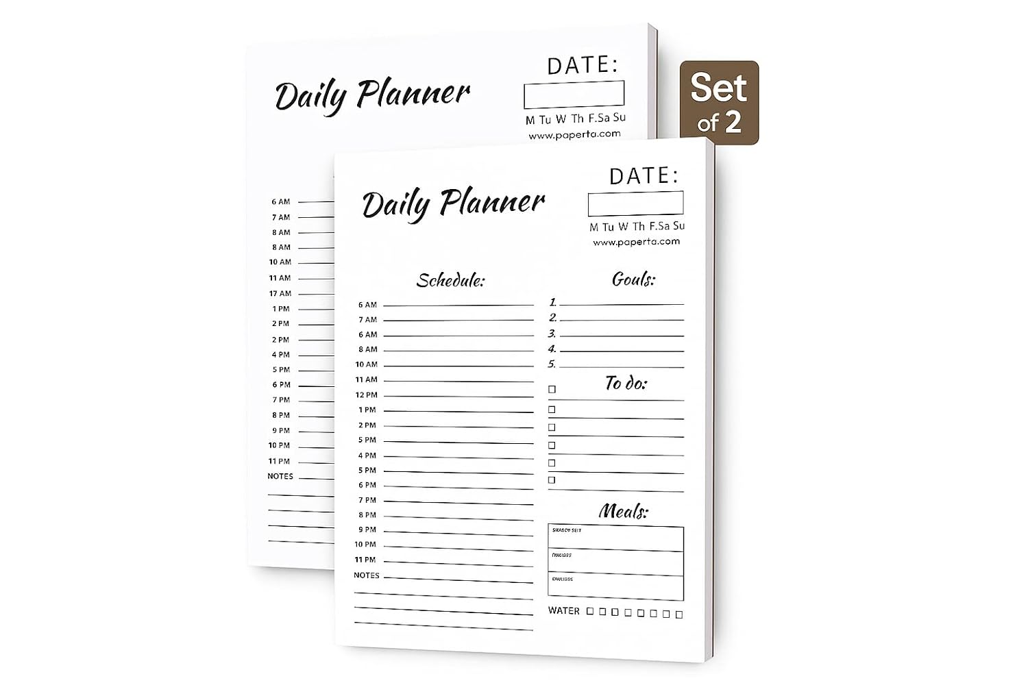 A5 Daily Planner Pad – 5.5×8.5 inch Undated To-Do List, Hourly Schedule, Goal & Meal Tracker – Minimalist Daily Organizer for Office, School, Home, Women & Men (Set of 2 Pads)