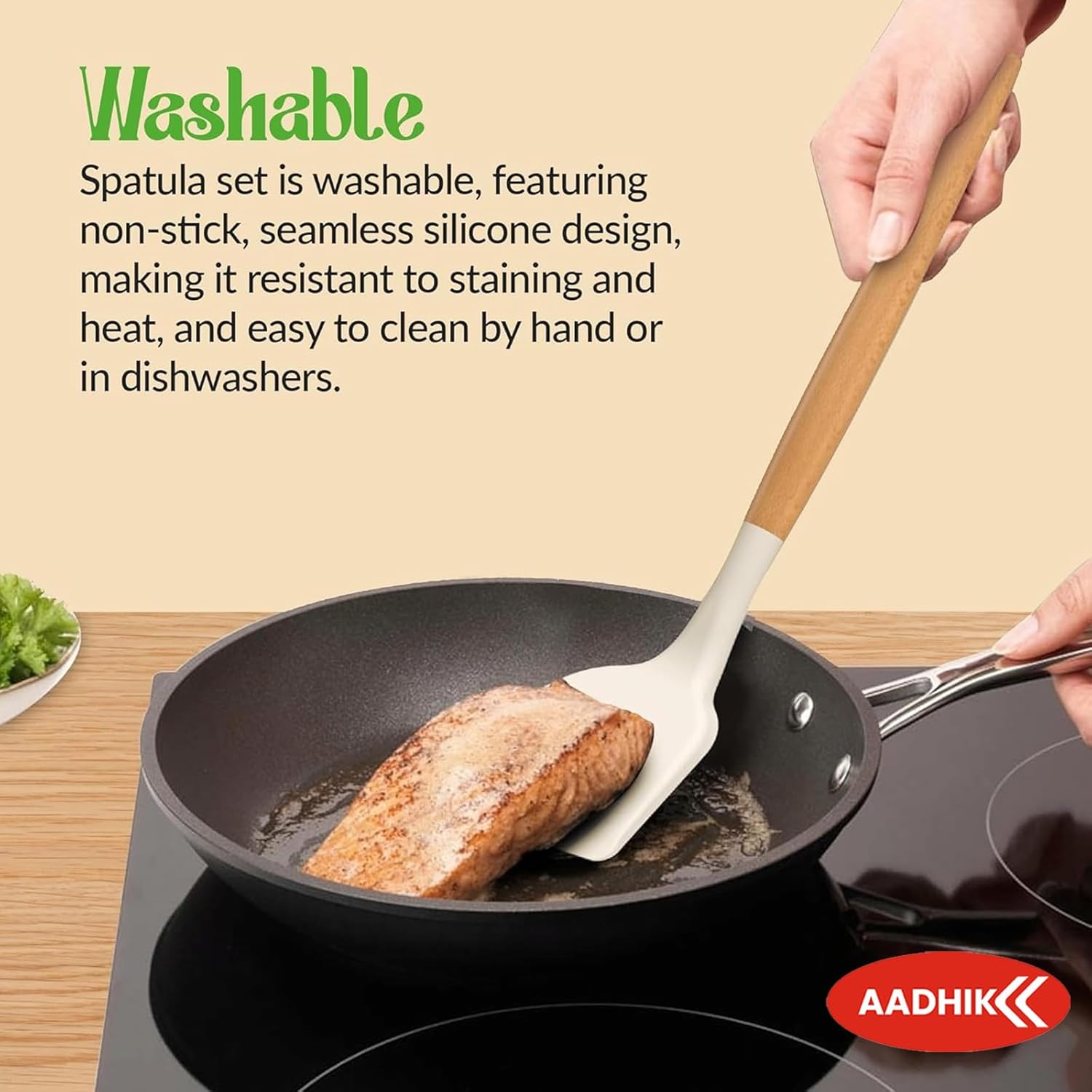 Silicone with Wooden Handle: Made with high-quality, food-grade silicone and an ergonomic wooden handle, these spatulas provide a comfortable grip while ensuring durability. The combination offers the perfect balance between flexibility and strength.