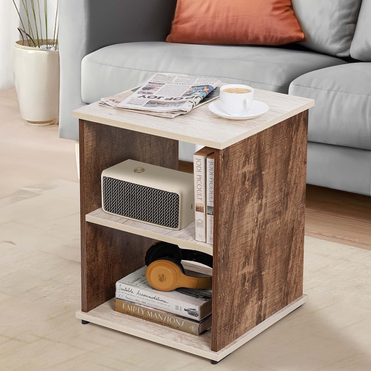 Bedside lamps can be placed on this stand to create a complete look. This wooden side table can be used as a router stand, bookshelf, decor stand, and bedside table for easy access to things