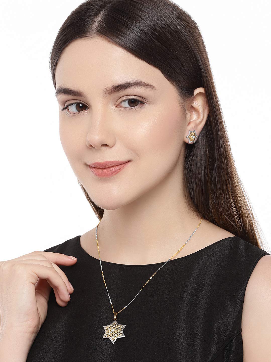 Designed and Crafted For AccessHer By best industry designers and craftsmen, this stunning Brass Antique Necklace with Earrings is pleasing and graceful. Made from copper the Necklace and earrings are plated with Hi-gold.This gives the product exceptional shelf life and durability. It features exquisite work accompanied by flawless Austrian Diamonds and gems. Pick this piece to compliment any outfit of yours.