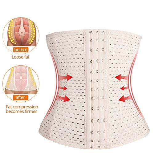 Air Breath Tummy Grip Belt Waist Trainer Trimmer and Slimming Corset 3 Hooks Row Girdle with Shapewear for Women Free Size Best for (28 to 34 Waist) Beige