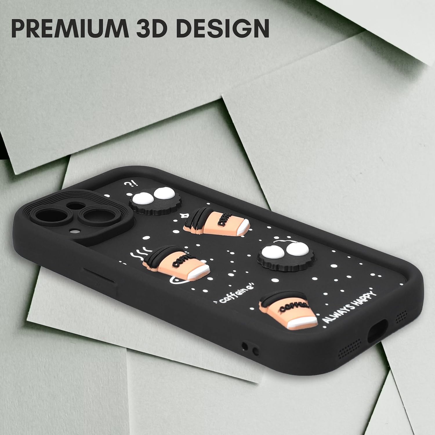 amazon basics Back Case Cover Compatible for iPhone 13 | Cute Fun Cartoon 3D Ball | Coffee Silicone Case | Camera Protection | Body Protection | Shock Proof | Color Black | Pack of 1 |