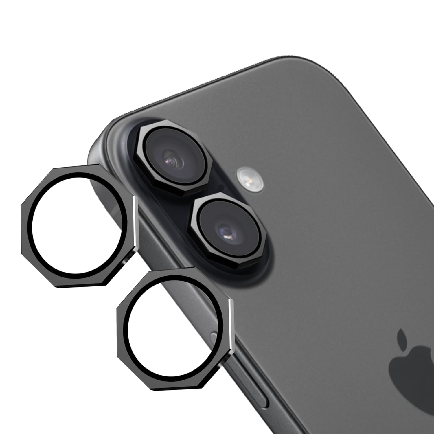 amazon basics Hexa Camera Glass Lens Protector Ring for iPhone 17, Football Ring, Case Friendly with Edge to Edge Coverage and Easy Installation (Black)