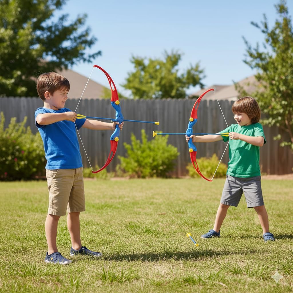 【PACK CONTAINS】Archer Bow and Arrow Toy with 3 Arrows, Strong String Thread, Target Board printed on backside of cardboard box. Archery is a great way to encourage kids to get outside and enjoy the outdoors. Whether they’re practicing their aim in the backyard or play at home, this set is sure to provide endless hours of entertainment and development