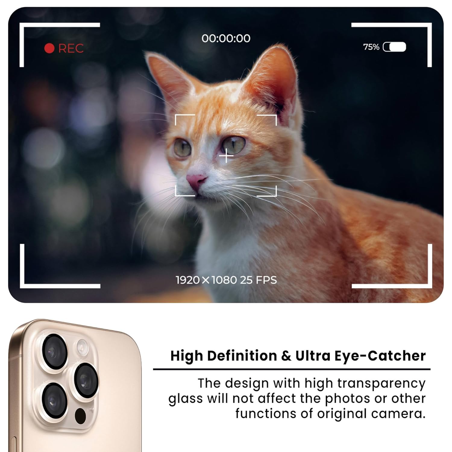 ArmourPro Camera Lens Protectors for iPhone 16 Pro Max and iPhone 16 Pro Tough HD Individual Aluminum Alloy Lens Ring Cover, Scratch Resistant, Thin Tempered Glass| Desert Titanium