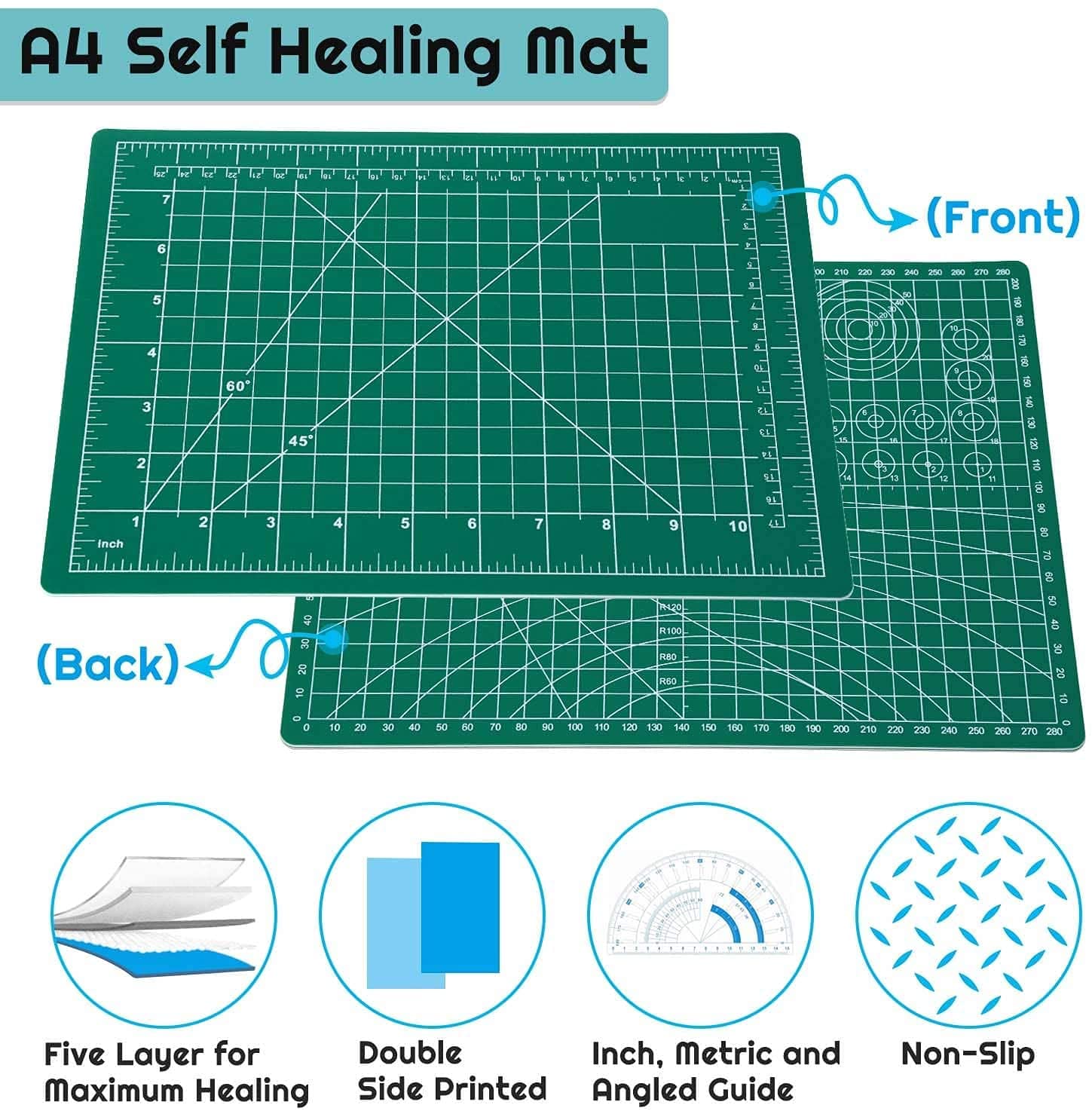 【SELF HEALING CUTTING MAT】Made of 5-layer PVC material, the white hardness PVC in the middle help to prevent cutting through. Special finish reseals surface cuts, providing a continually smooth surface for all cutting projects
