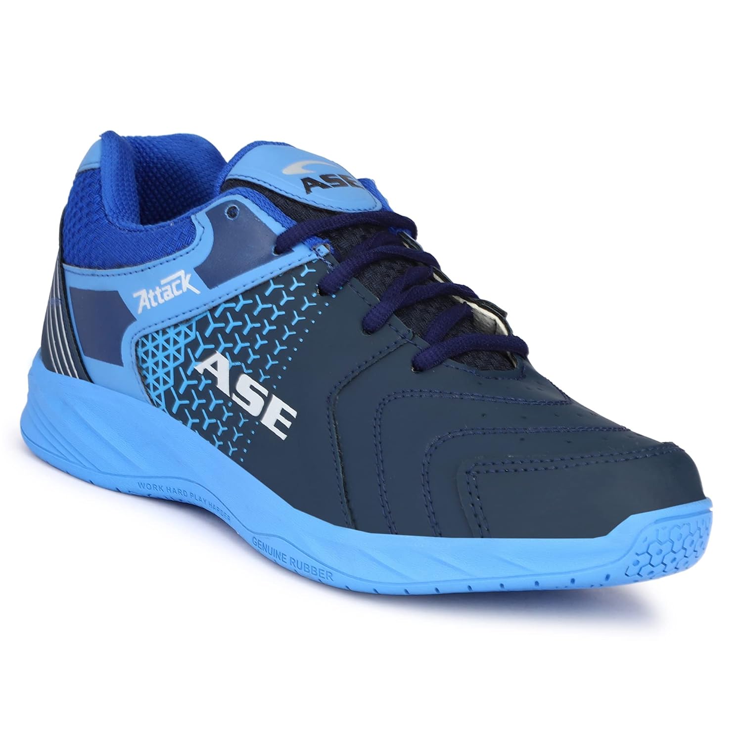 The ASE Badminton shoe comes in all sizes with an attractive design . The outer material is of PU and PVC Synthetic leather . Available with a Phylon & Rubber -Non Marking Sole for its maximum Performance and durability . The pair looks graceful while wearing .