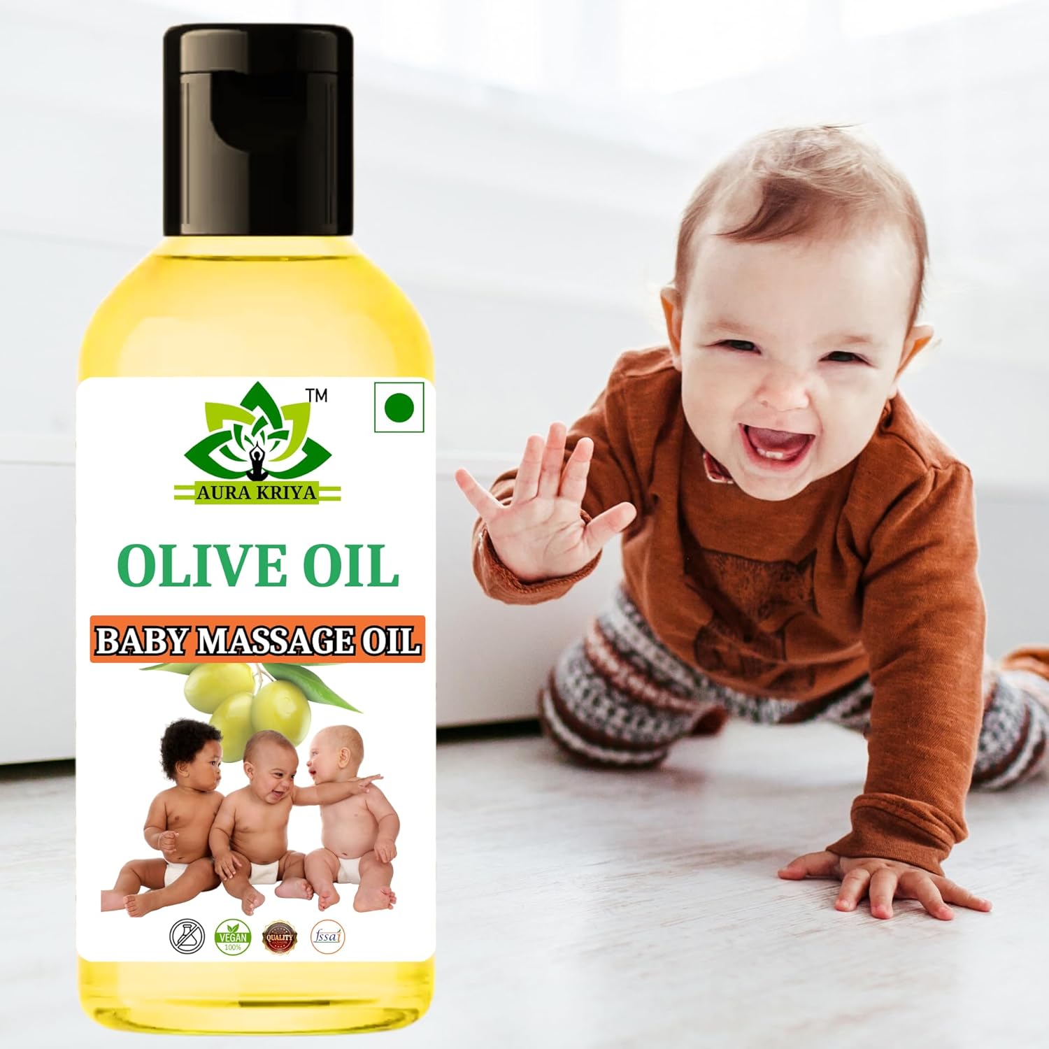 Aura Kriya Olive Baby Massage Oil is designed for delicate baby skin, offering deep nourishment. The oil softens and hydrates, preventing dryness while supporting healthy skin development. It provides a protective layer that helps to lock in moisture, keeping the skin smooth and supple.
