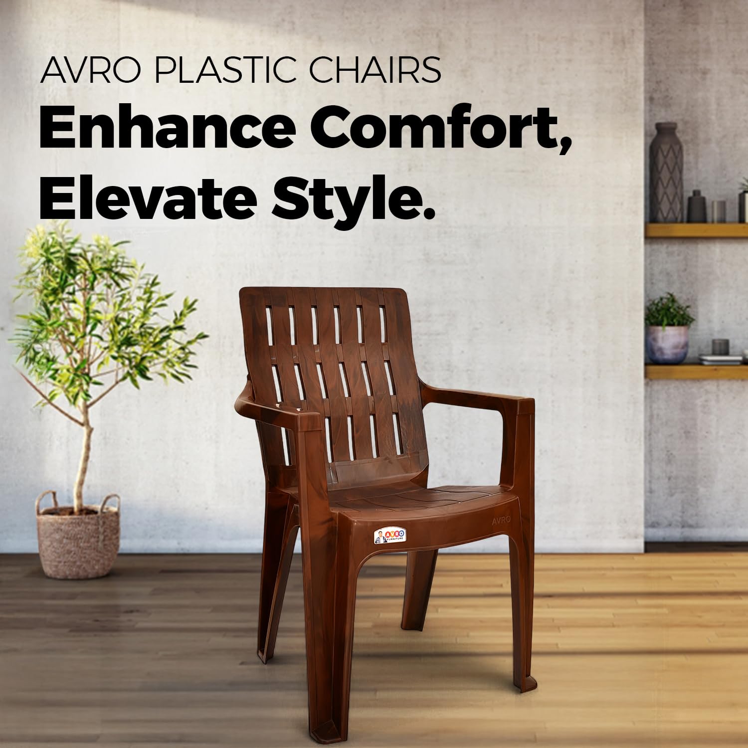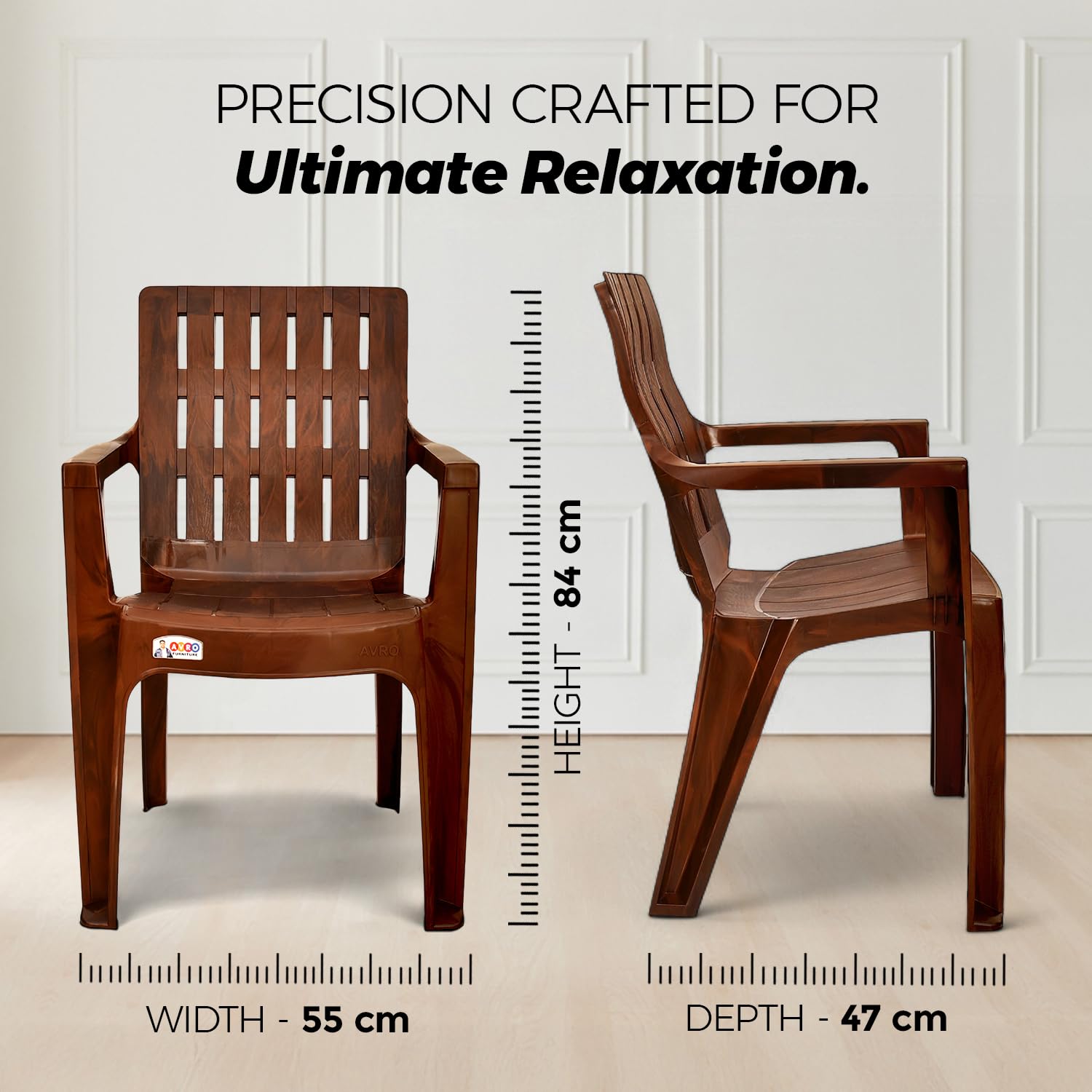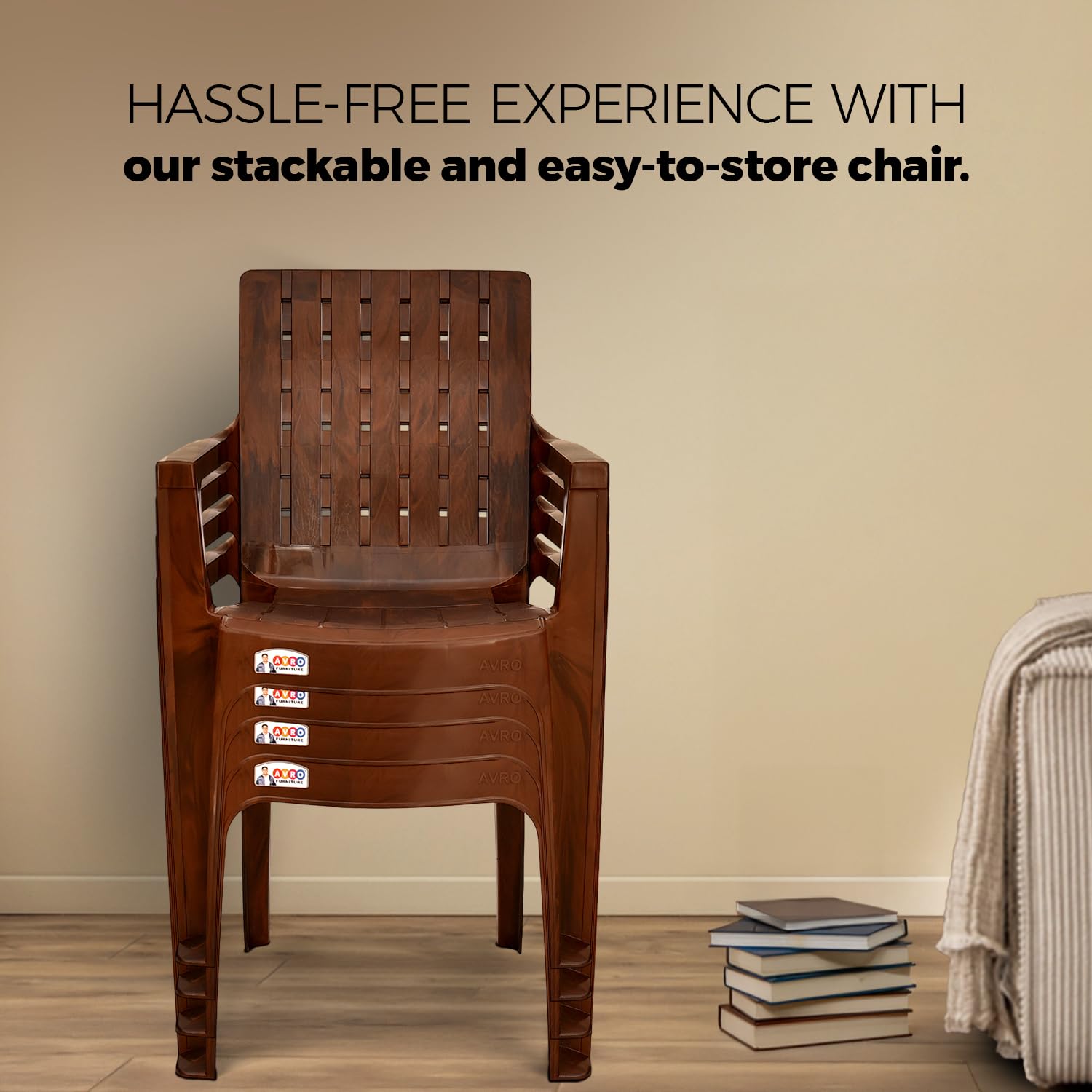 AVRO Furniture Spine Care Orthopaedic Plastic Chair, Set of 4, Ideal for Home, Office & Outdoor, 150Kg Load Capacity, Durable Strong Build, Comfortable Back Design, 2 Years Guarantee, W. Brown Color