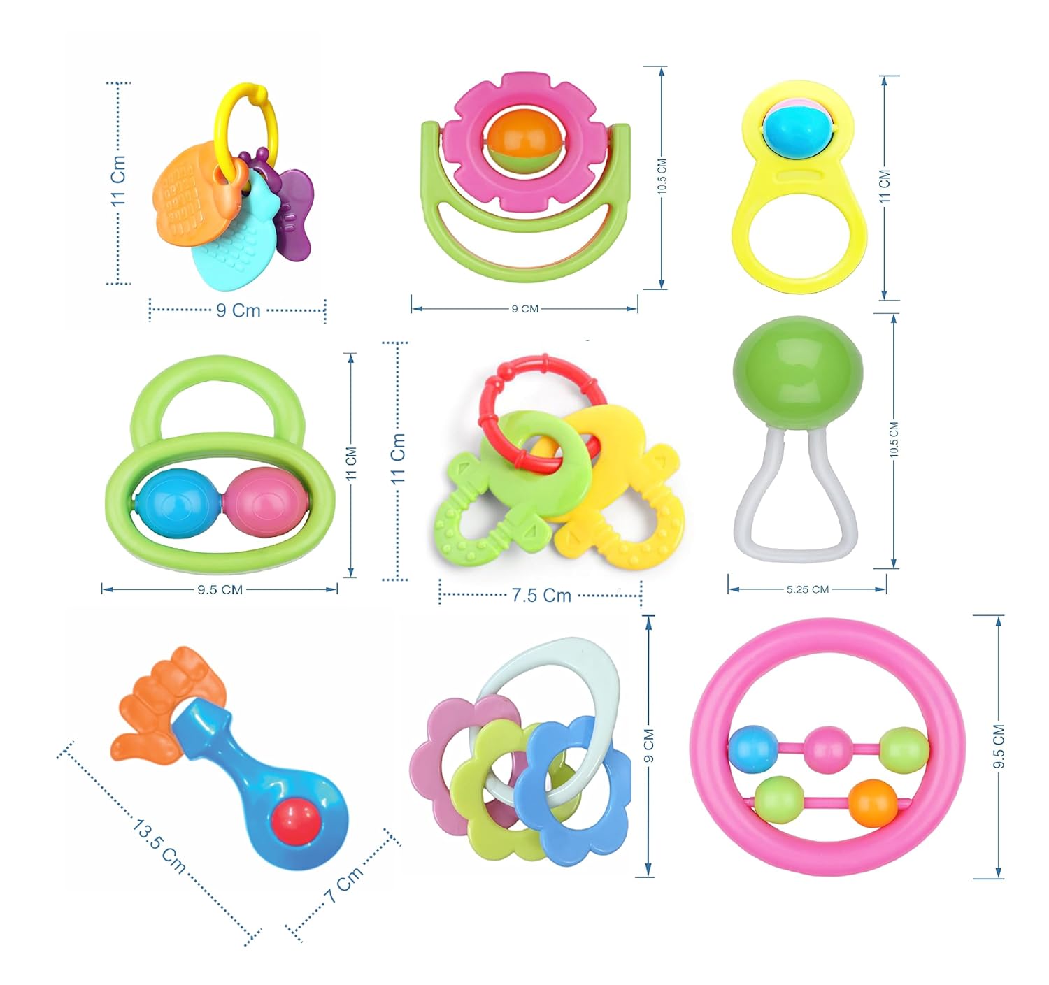 CUTE & EFFECTIVE: The Individual Toy pieces in the Rattle Set are extremely Eye-Catching and Colorful. Watch Your Baby’s Happiness while playing with this Little Toys And Develop his senses for identifying Colors nd Textures.