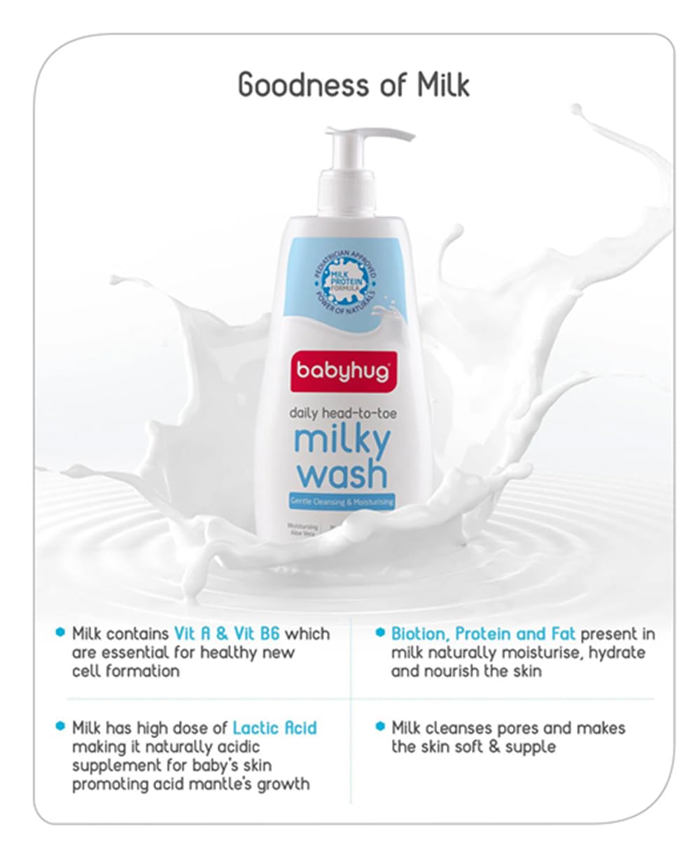 Babyhug Milk Protein Formula Daily Head To Toe Milky Wash No Tear Formula For Newborn Baby 2 In 1 Shampoo & Body Wash- 400 ml