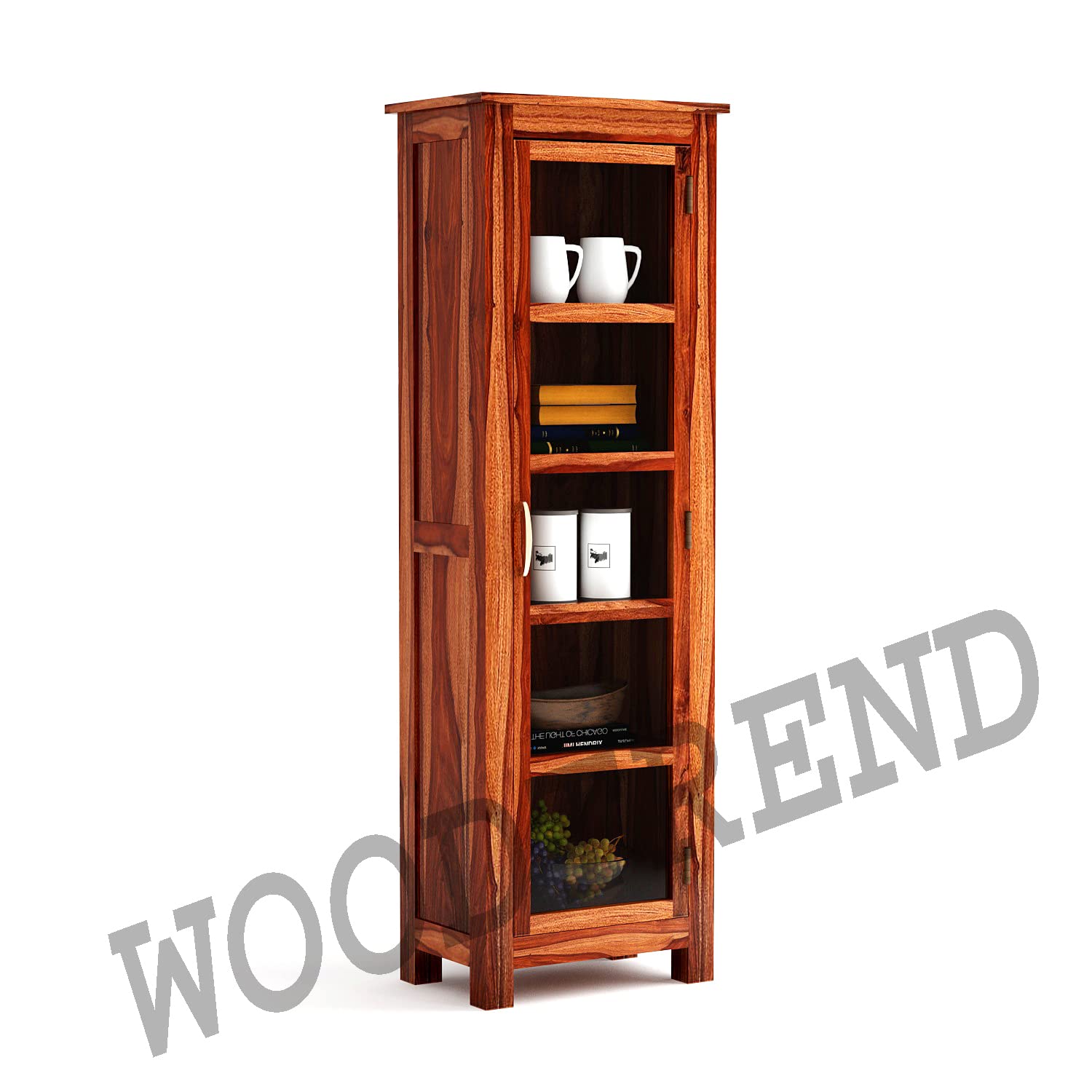 BANSHI WOOD FURNITURE Wood Book Shelf with Glass Door, Bookshelf for Home Library, Crockery Cabinet, Kitchen Cabinet Storage, Dining Room Furniture, Books Rack,Book Stand,BookCases,Shelves, Honey