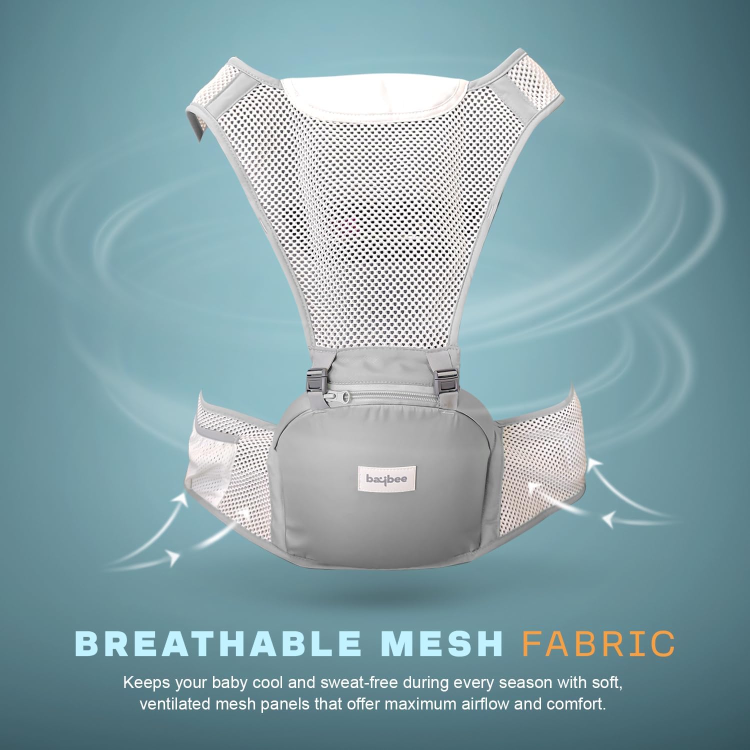 Baybee Flownest Hip Seat Baby Carrier for New Born Babies with Multiple Carrying Positions | Baby Carrying Bag with Non-Slip 30° Inclined Seat & Three-Point Balance Support | Breathable Mesh Fabric Baby Carrier for 0 to 3 Years Baby | Baby Sling Carrier with Max Weights Upto 15 Kg (Grey)