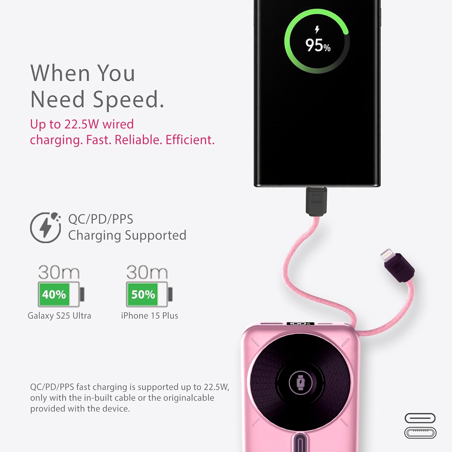10000mAh Battery for All-Day Backup – With a 10000mAh high-capacity battery, MagVibe WS10 delivers reliable power backup to keep your smartphone and accessories running throughout the day. It’s compact and portable, making it easy to carry in your pocket, handbag, or backpack
