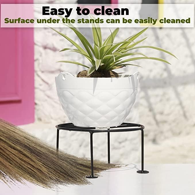 Brings a feel of nature into your living space with the help of this 8-pack N.A metal plant stand set. Lift your plants to make watering easier and prevent damage to floors. Add a delightful and warm accent to showcase your plants and flowers. These metal stands provide a lovely way to display your favorite potted plant in style. It raises your plants to a suitable height to obtain more sunshine for growth. Stylish Design Durable metal construction, elegant top placing pattern, and three-legged frame design give this plant stand both style and versatility to complete your décor in the living room or out on the patio. Perfect Size Its leg height is 4Inch and the load capacity is up to 50kg, Hassle-free Use With advanced welding process, each joint is specially treated in detail which is firm and beautiful. Curved legs will not scratch your floor or deck. Perfect for both indoor and outdoor use