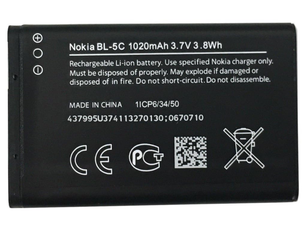 Upgrade your old phone with the BL-5C Mobile Battery, designed for long-lasting performance and reliable backup power. This rechargeable Li-ion battery is 100% compatible with a wide range of Nokia keypad mobiles, including classic models like Nokia 1100, 1110, 1200, 1208, 1600, 2300, 2600, 3100, 3220, 6030, 6230, 6600, N-Gage QD and many more. With a capacity of 1020mAh, this replacement battery ensures stable power supply, longer talk time, and standby time, making it a perfect choice to keep your Nokia phone running like new.