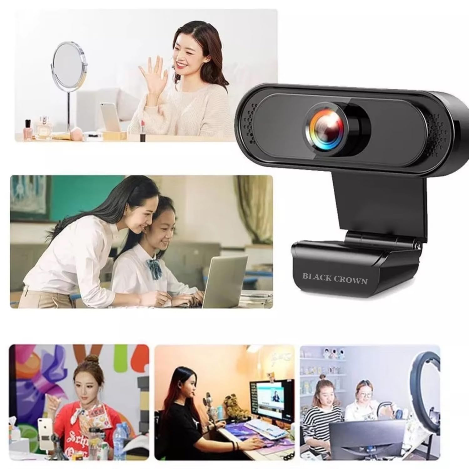 BLACK CROWN Webcam HD 720P, Noise Isolated Microphone with Computer HD stremaing Web cam for Desktop & Laptop with mic with Wide Angle Lens & Large Sensor for Superior Low Light, Optical. (042)(Black)