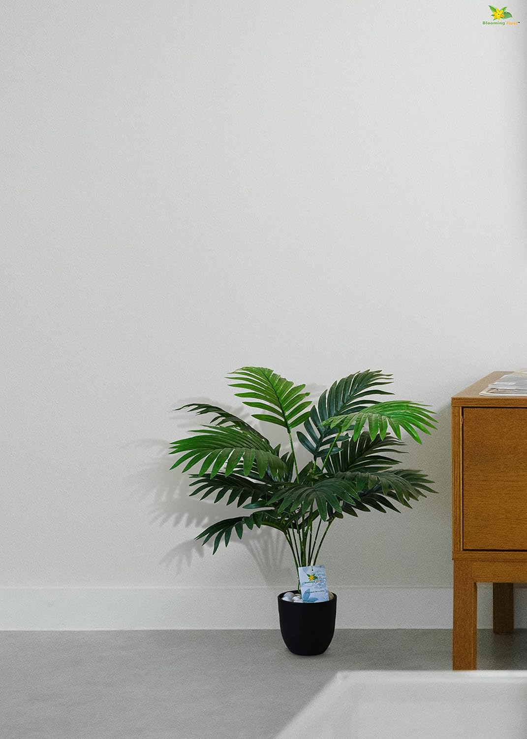 Blooming Floret Artificial Areca Palm containing the 18 / 12 leaves a stem along with a plastic pot. The leaves, stem & the pot will be separated, you just have to fix the leaves to the stem and then fit the stem into the pot with some artificial soil or with some beautiful pebbles & stones in order to hold the plant’s stem steady inside the pot. You can also place it in a planter of your own choice to match it up with the interiors.