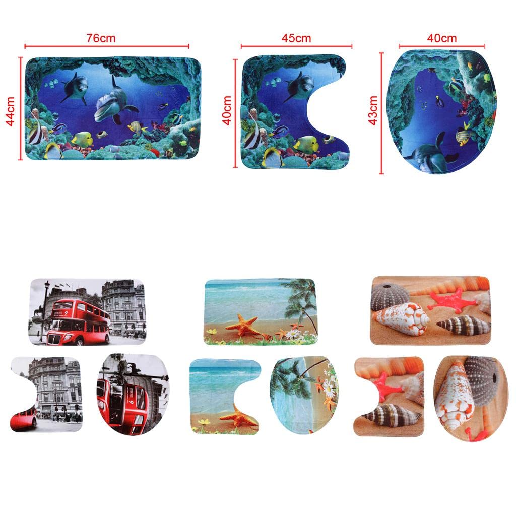 Description:Velvet Fabric, Very Soft Feeling And Comfortable, Pvc Mesh Bottom, Non-Toxic, Odorless, Not Moldy.Easy Absorb Water And DustGood Slip Resistance;Easy To Clean, Can Be Directly Washed By Washing Machine Or , Not Shed And Fade, The Back Avoid To Direct Sunlight.High Density Super Soft Fabrics, Comfortable, Environmental Protective, Good Ventilation.Can Be Used Under The Table And In Bedroom, Kitchen, Bed, Car Seat, Sofa Cushion, And So On.Technology: Thermal TransferMaterial: Bottom: Pvc Mesh BottomThickness: 0.8Cm &Plusmn; 5%Size: Bath Mat: 17.32X29.92; / 44X76Cm; Lid Toilet Cover: 15.75X16.93; / 40X43Cm; Pedestal Rug: 17.92X15.75; / 45X40CmWashing Note:Hand Wash: Soak In Water 10 Minutes, Then Add The Detergent Or Laundry Detergent, Scrub Gently With A Brush.Machine Wash: Soak In Water10 Mins, Then Folded Twice Into The Washing Machine, Don;T With Other Clothes To Wash.Package Includes:3Pcs A Set (Pedestal Rug + Lid Toilet Cover + Bath Mat)