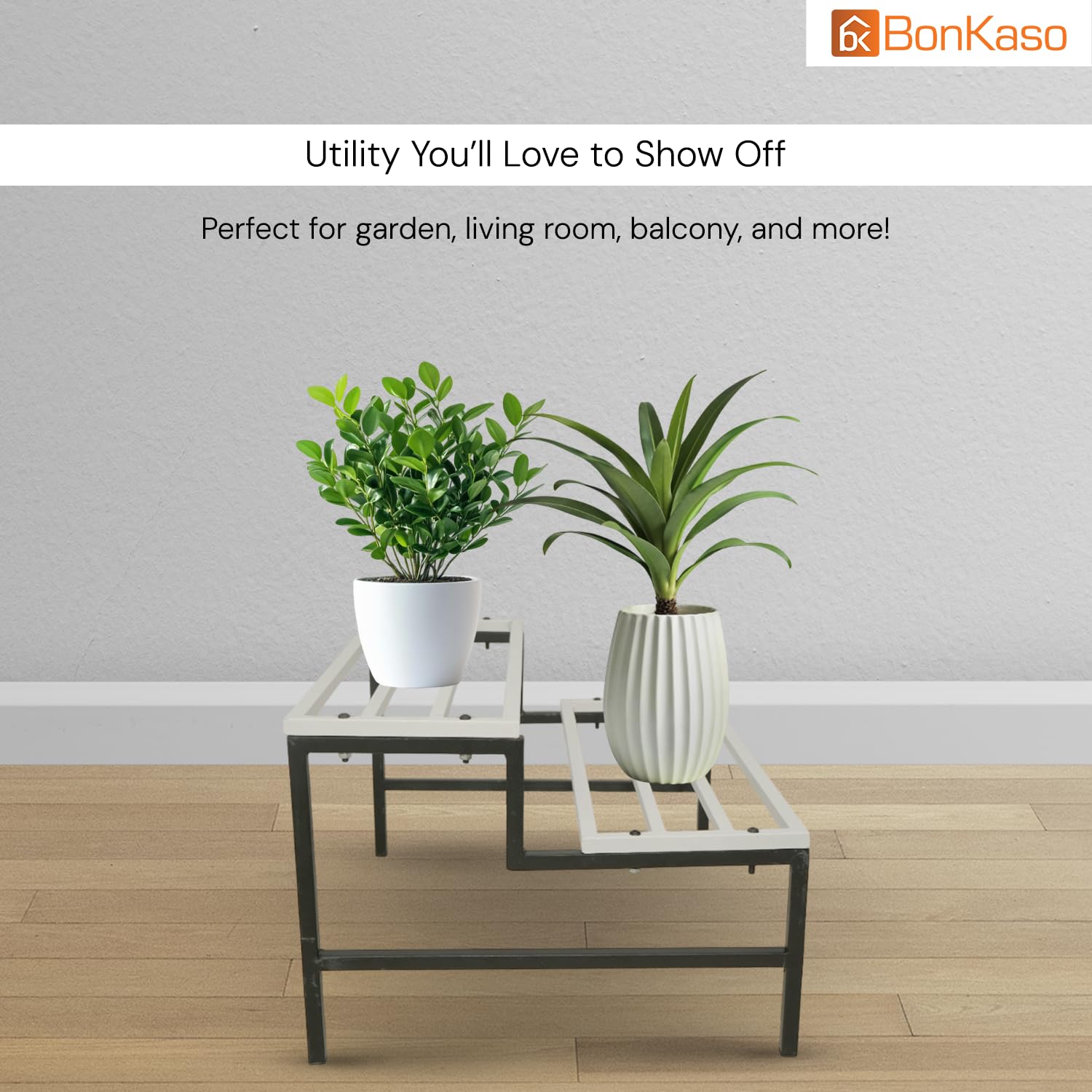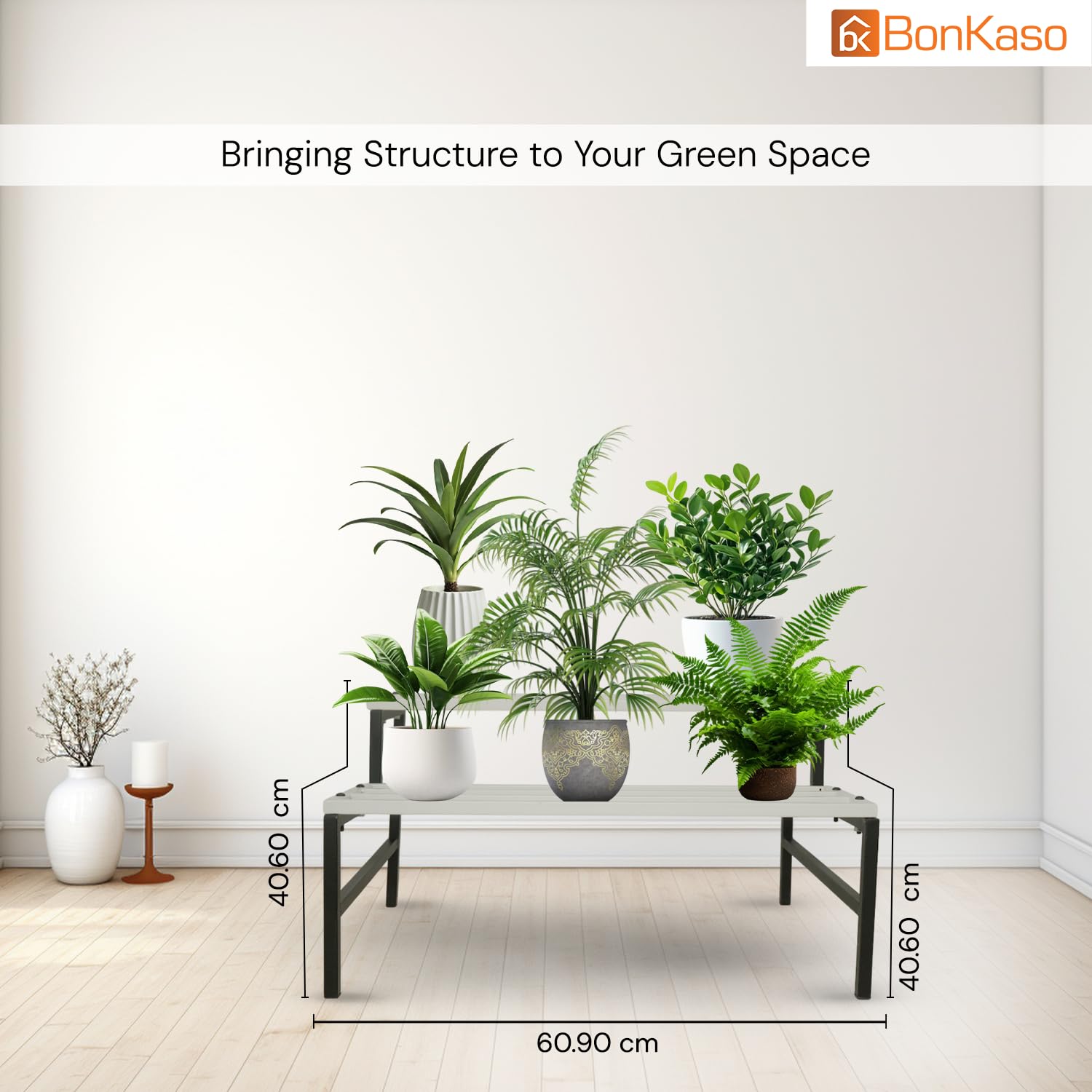 Strong & Durable Build: Made from high-quality metal, this 2-tier plant stand offers excellent strength and can hold up to 50 kg per tier, making it ideal for heavy pots.