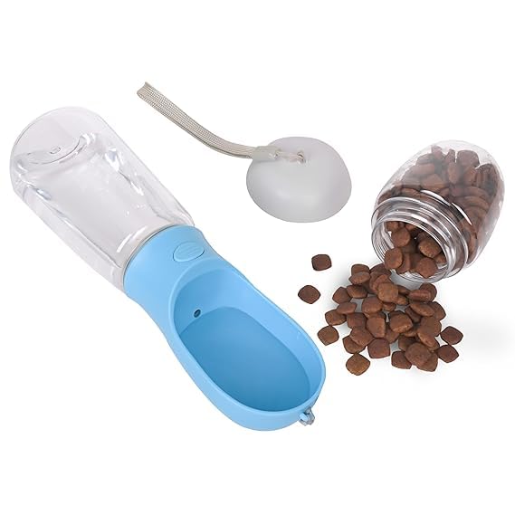 【2 In 1 Portable Design】:Pet water bottle is designed not only to hold water, but also to carry food.