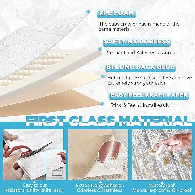 Made of soft PE foam,Anti Children’s Collision,take care of your family.Waterproof, moist-proof and sound insulated. Easy clean and maintenance with wet cloth,economic wall covering material.