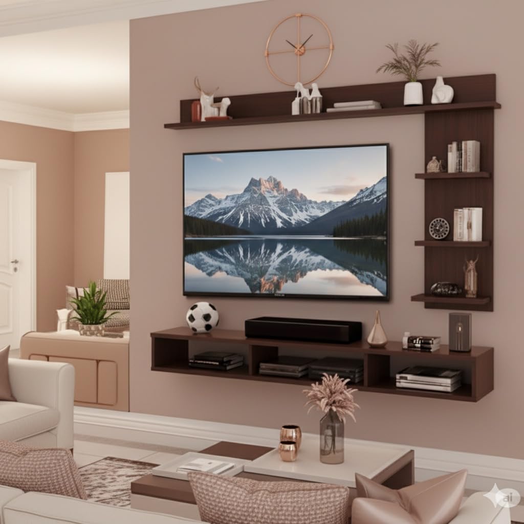 Upgrade your living space with our elegant 32-inch C-Style Wall-Mounted TV Cabinet, designed to combine modern aesthetics with everyday convenience. Suitable for Smart TVs up to 32 inches, this unit enhances your entertainment setup while keeping your wall area beautifully organized. Crafted from premium pre-laminated engineered wood, it offers durability, a smooth matte finish, and resistance to scratches and moisture. Its unique C-shaped design with integrated side shelves provides ample room for décor, books, speakers, and entertainment essentials, making it both stylish and functional. The strong wall-mount design ensures stability, while the rich wenge finish adds a sophisticated charm to any interior theme. When you purchase this TV cabinet from us, you get superior craftsmanship, reliable after-sales support, and easy DIY installation. Perfect for compact homes or modern apartments, this unit saves space and transforms your living room into a smart, organized, and elegant entertainment zone.