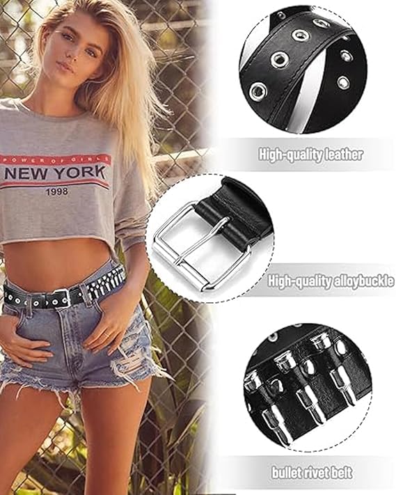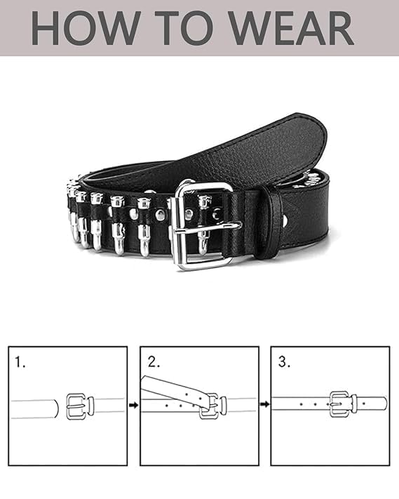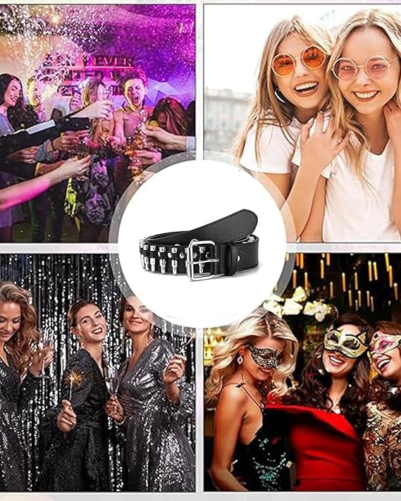 Studded Belt, Studded Belt Mens, Waist Ladies Belt, Bullet Belt, Studded Belts for Men, Black Studded Belt, Women Y2k Belts, Belts for Jeans and Dresses, Halloween, Party Dressing Up Fine Material & Craftmanship: Crafted from premium materials, this belt is designed for long-lasting use. The rhinestones are securely fastened to prevent falling off. Versatile Design: The studded detailing lends a punk or rock-inspired look, suitable for casual or semi-formal occasions. Adjustable design: The y2k belt porous design meets the needs of different waist circumferences and can adjust the size freely, allows you to customize the fit for your waist or hips. Fashion Accessory: Whether it’s a special occasion or a regular day, this belt adds a touch of sophistication and elegance, making it a must-have accessory for any style-savvy woman. Unisex: Whether it is paired with jeans for a casual and casual look, a dress for an elegant and romantic look, or a personalized look that needs to be infused with punk elements, black studded belt can easily handle it.