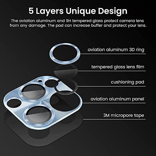 Camera Lens Protector Compatible With iPhone 12 Pro � Full Coverage 9H Tempered Glass with Metal Plate, HD Clear, Joint Camera Ring Protector – Blue