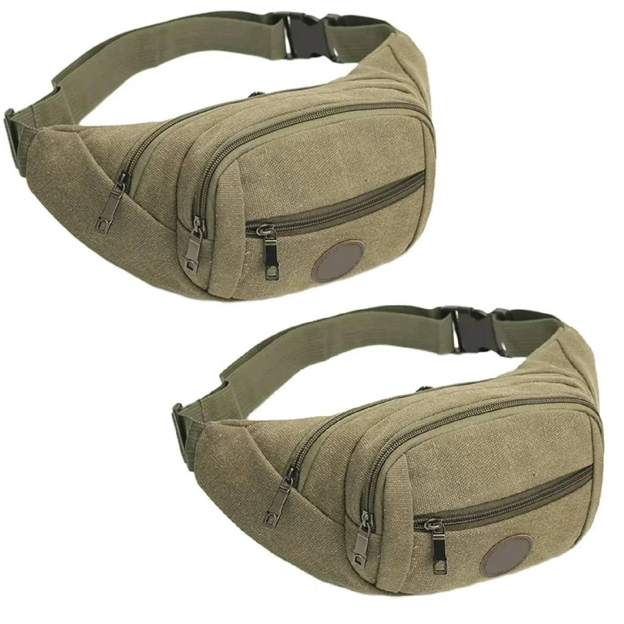 Canvas Waist Bag for Men and Women, Brown Multi-Pocket Fanny Pack with Adjustable Strap 2 pcs