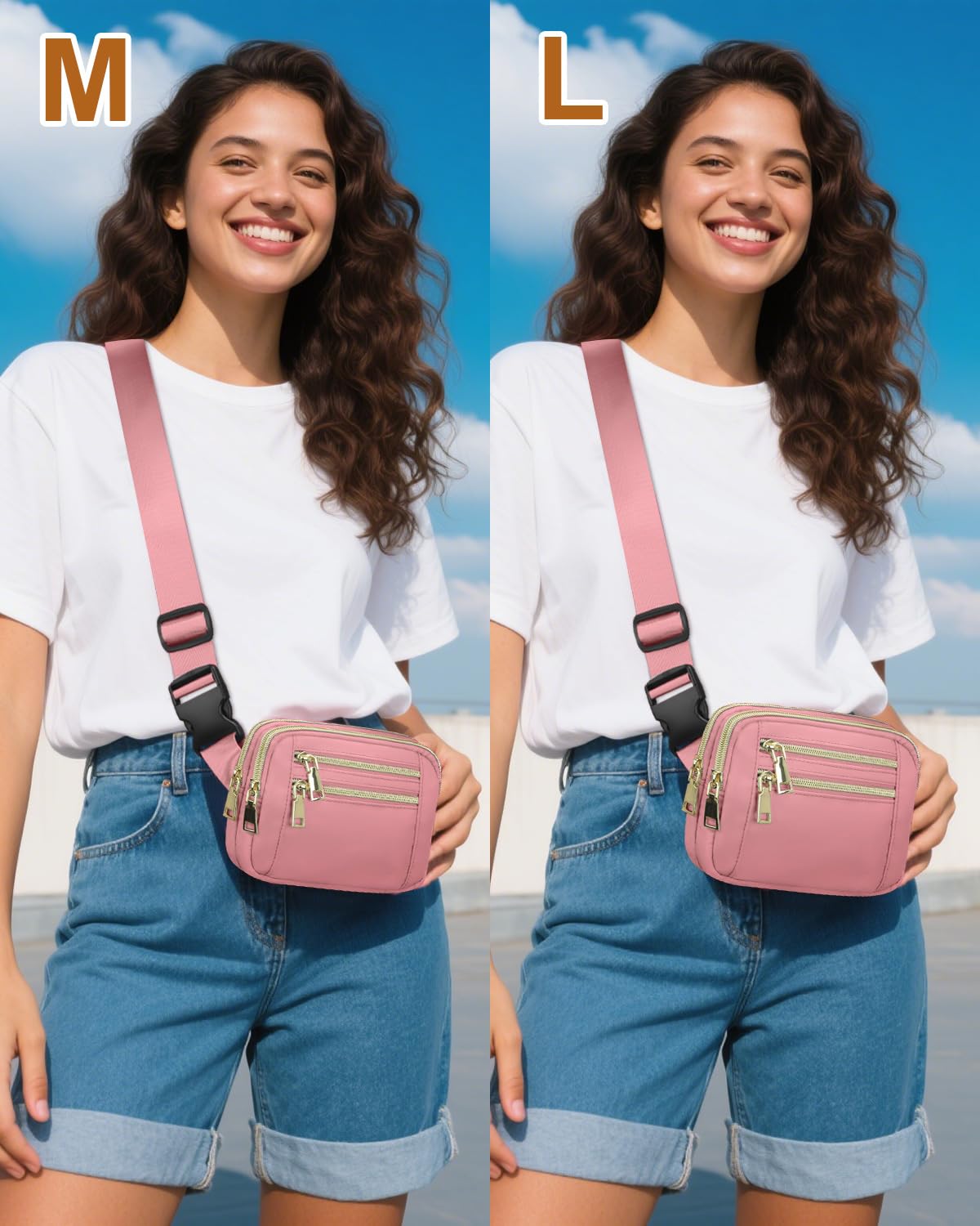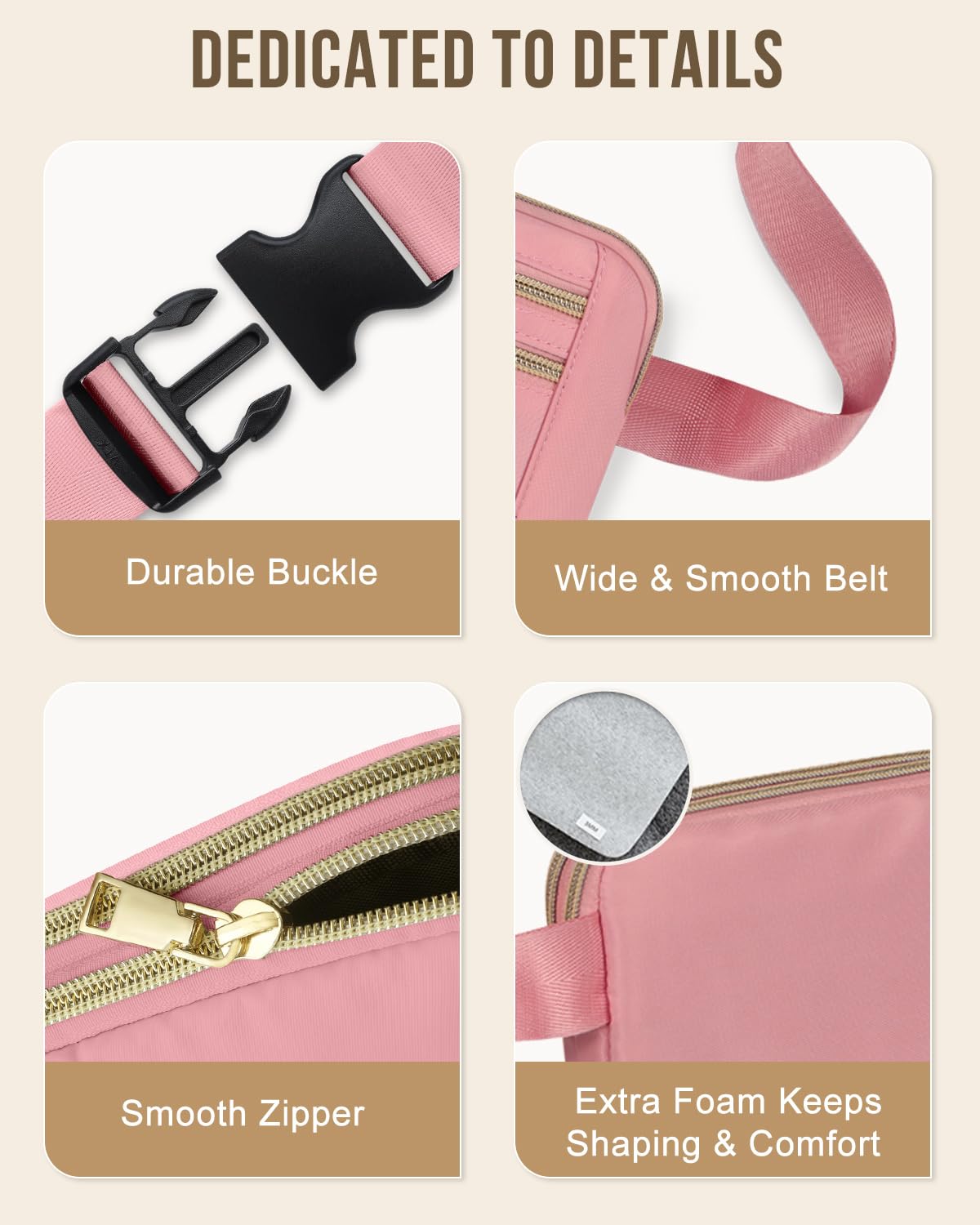 Capolo Fanny Packs for Women Fashion Waist Packs Bag with Adjustable Strap and 4 Zipper Pockets Waterproof Everywhere Crossbody Belt Bag for Workout Running Travelling, Pink, Large