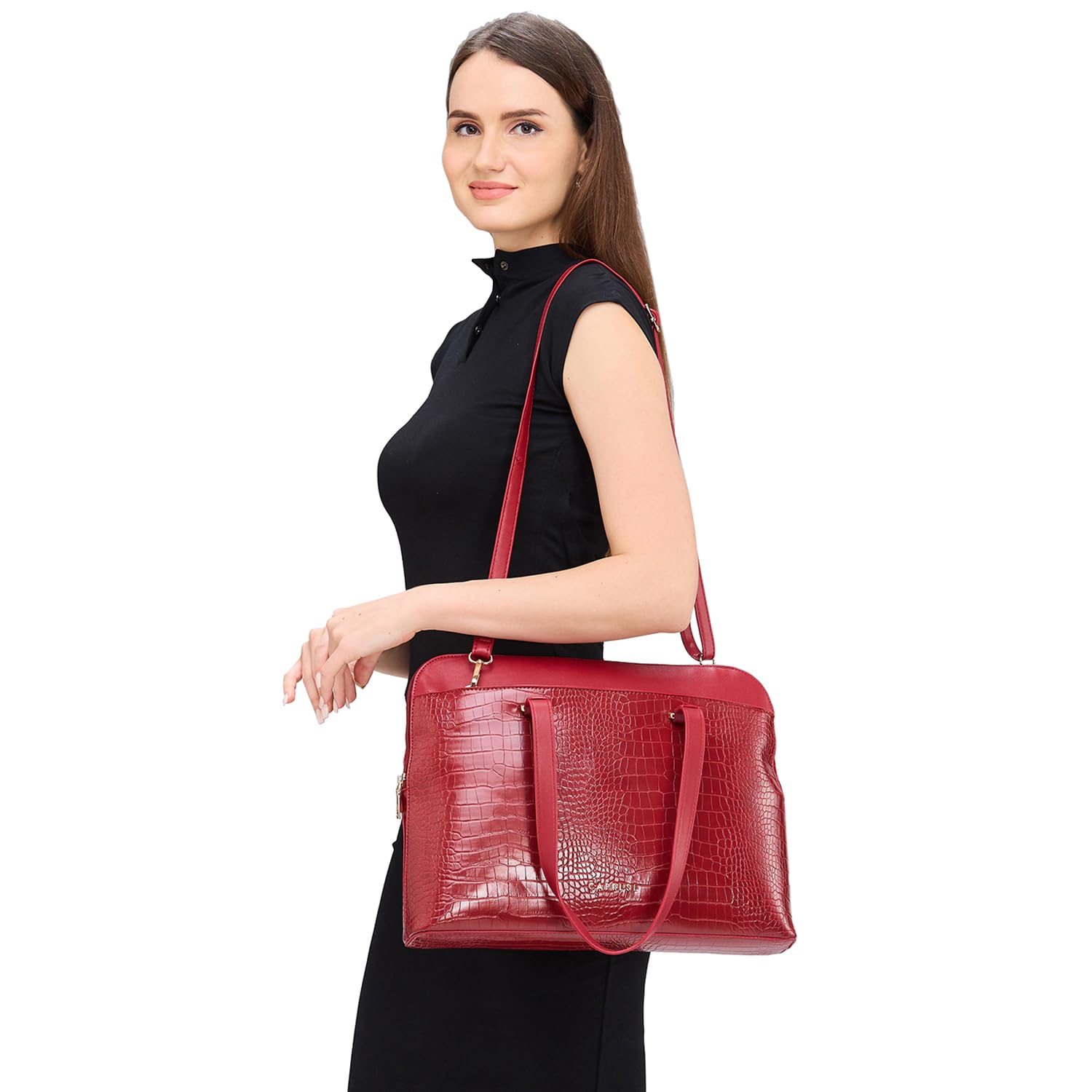 The Caprese Rima Croc Finish Laptop Bag is designed to accommodate a 15-inch laptop, making it a stylish laptop handbag for women. Its spacious compartments are perfect for office and daily essentials, making it a top choice for an office bag or college bag. This laptop bag for women handbag combines style with practicality.
