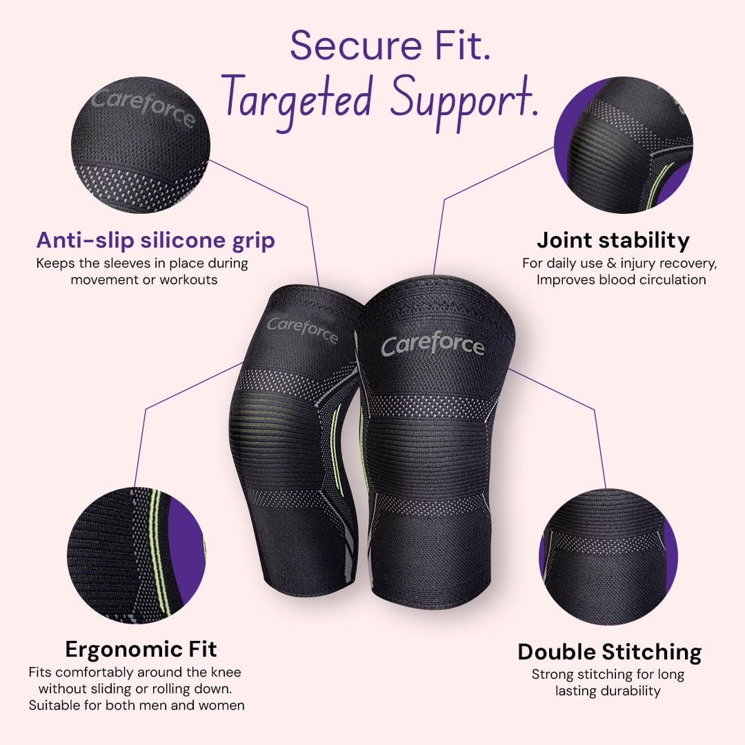 Careforce – The Force Behind Your Health Knee Support For Men & Women For Gym Workout Knee Caps For Pain Relief Knee Cap For Men In Running For Women For Squats, Compression – Rubber, Blkgrey – M